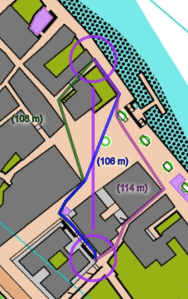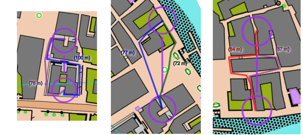 The terrain consisted of two main parts. The first section ran through the old town, where narrow streets and tight passages demanded precise navigation. The course included many circles, meaning athletes crossed the same area by different but looking similar streets from different directions, increasing the risk of confusion and requiring constant map contact.